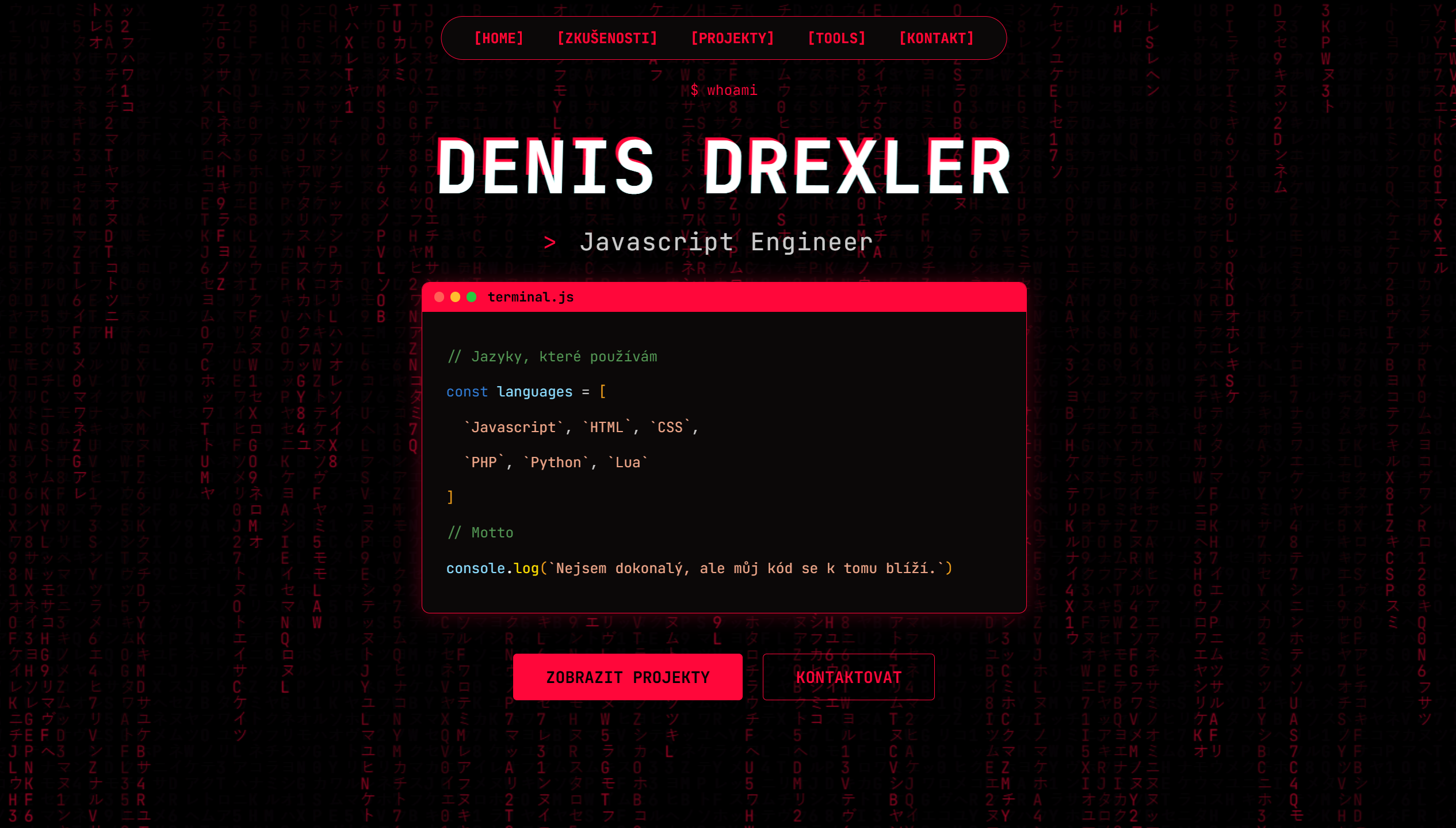 Moderní portfolio web pro prezentaci mých projektů s interaktivními efekty a nástroji.